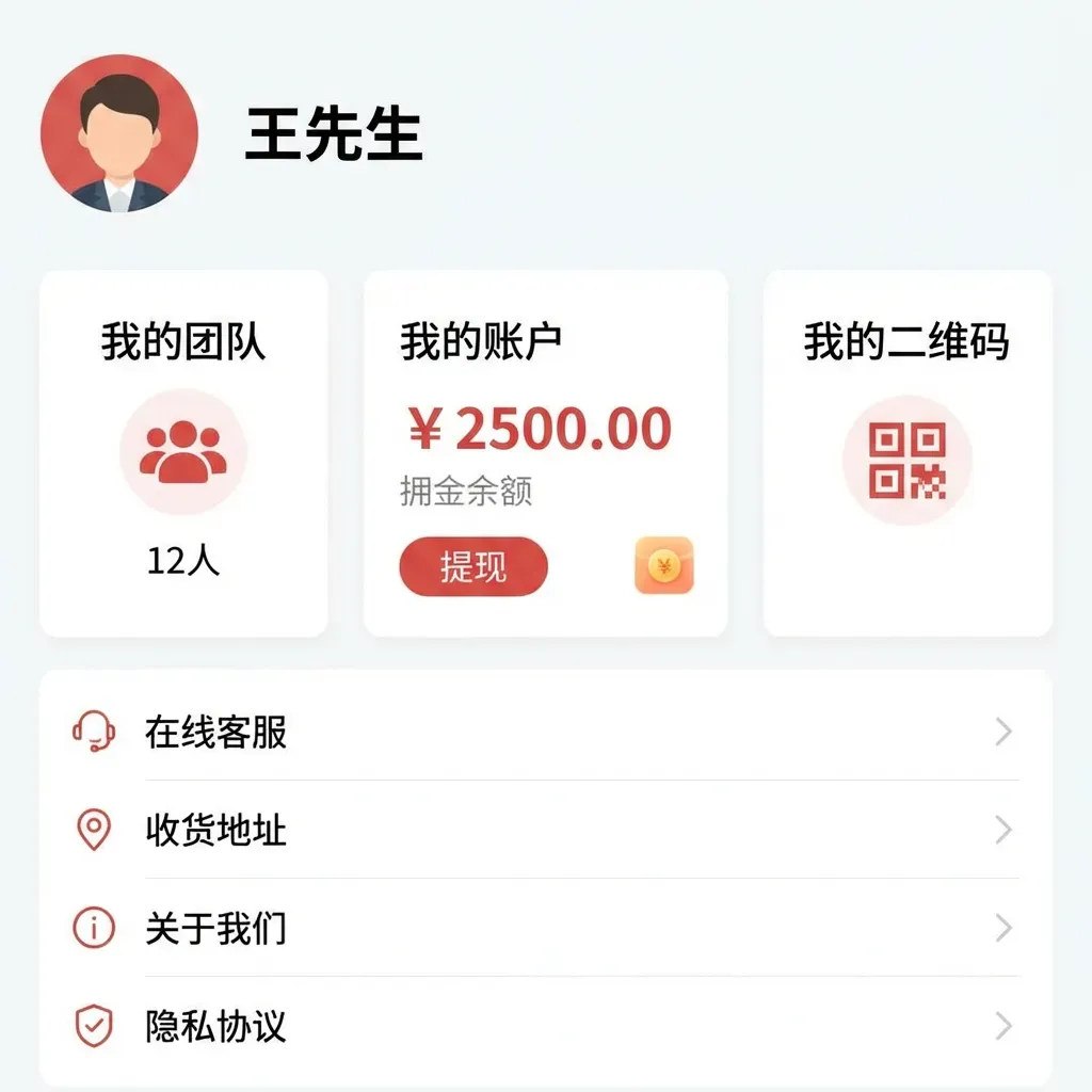 - 资金流转自动化:构建了“T+N”自动结算体系,用户确认收货后达到设定天数,系统自动解冻佣金与返现,既保障了资金安全,又提升了提现体验。