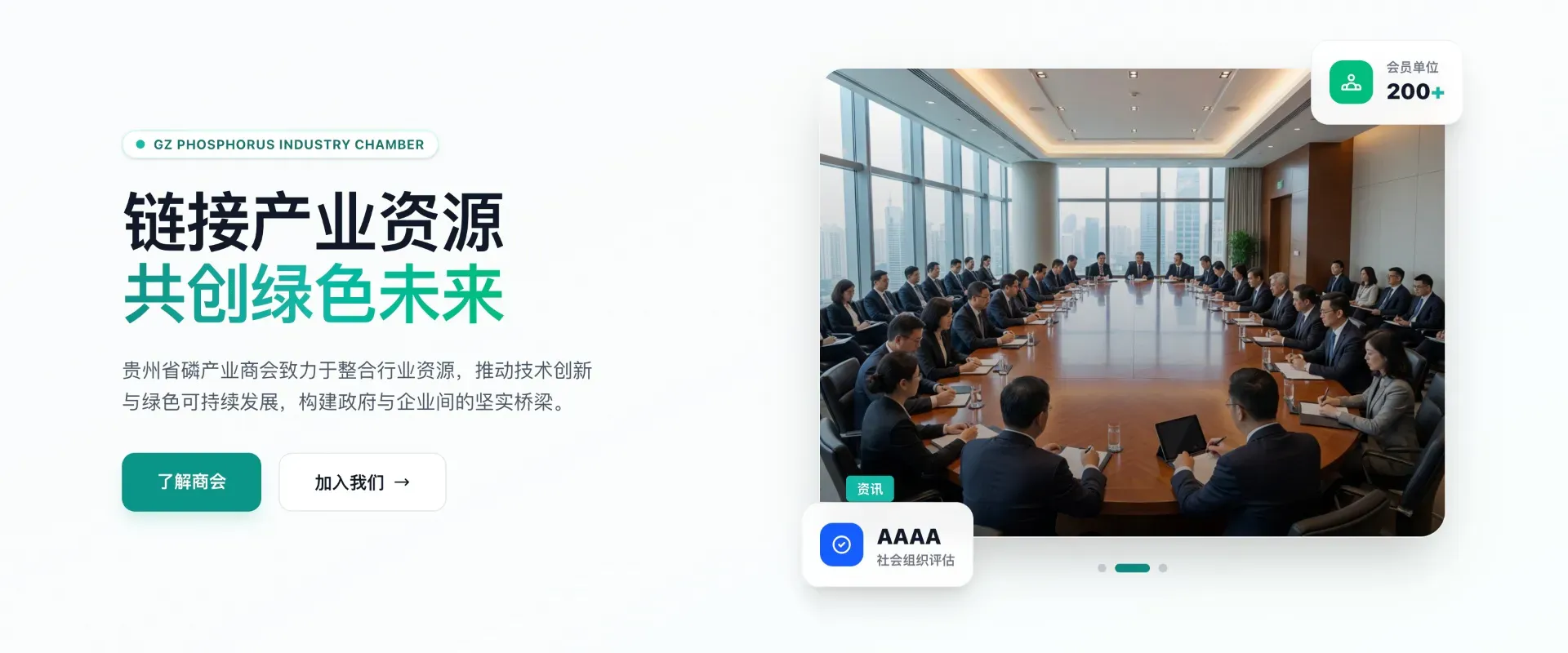 贵州省磷产业商会是连接政府与磷化工企业的核心枢纽,肩负着“链接产业资源,共创绿色未来”的使命。面对“AI赋能产业”的新时代浪潮,商会急需升级其数字基础设施,打造一个集资源整合、技术推广、政策协调与市场开拓于一体的现代化服务平台,以更好地服务 200+ 会员单位,推动产业向“绿色化、智能化”转型。